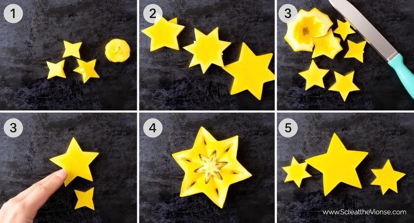 - Slice the fruit crosswise into ¼ to ½ inch thick star-shaped rounds.