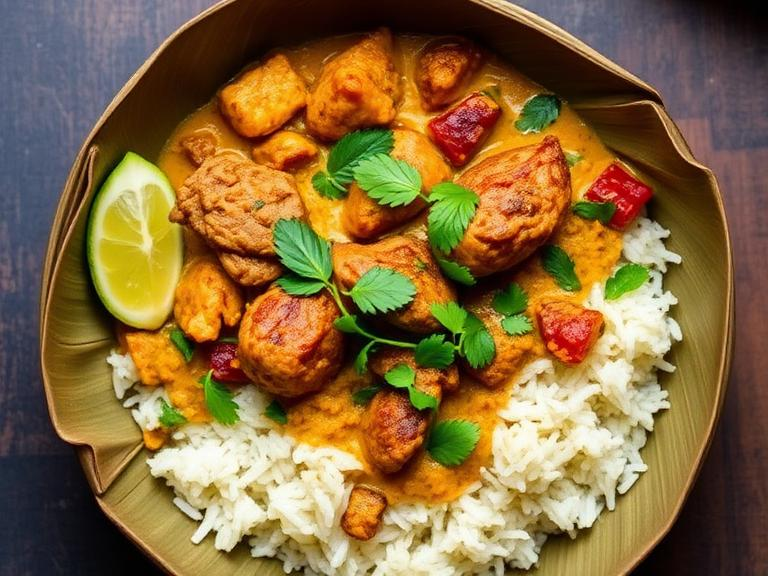 Donne Biryani is one of India’s most distinctive regional biryanis. This herb-packed dish comes from Bengaluru’s military hotels and is known for its bold, rustic flavor. Unlike saffron-heavy Hyderabadi styles, it uses short-grain seeraga samba rice and a fresh green masala made with mint, coriander, and green chilies. It is traditionally served in “donne” bowls made from dried areca palm leaves, which add a subtle earthy aroma.