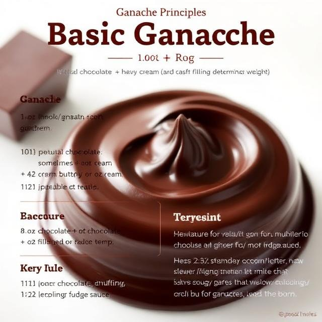 - 2:1 (more chocolate, e.g., 8 oz chocolate + 4 oz cream) — Thick, fudgy, ideal for firm fillings or truffles.